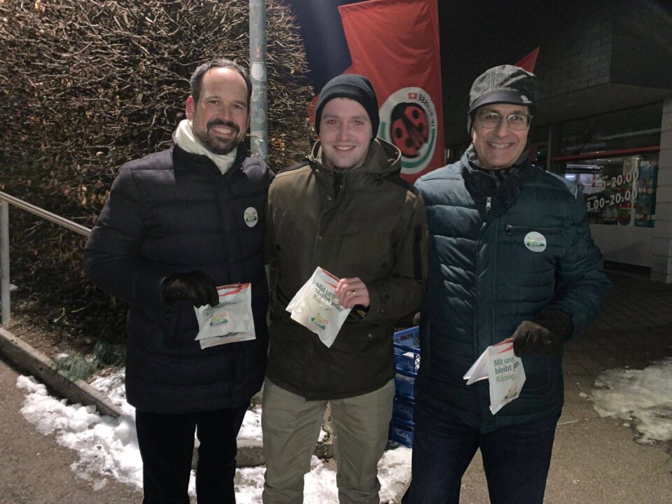 Lukas Bubb (Gemeinderatskandidat, neu), Marc Wachter (Präsident SVP Bezirk Meilen) und Roger Golero (Gemeinderatskandidat, neu)